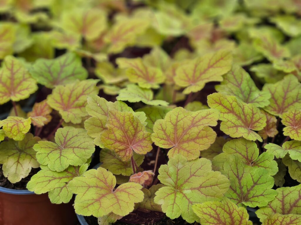 Die bunten Farbvariationen der Heuchera bringen Vielfalt in den Garten. Die wintergrüne Staude zeigt je nach Sorte Blätter in leuchtendem Limettengrün, warmen Bernstein, tiefen Purpur oder sogar fast schwarzem Ton. Dadurch setzt sie das ganze Jahr unterschiedliche Akzente, selbst in der kalten Jahreszeit, wenn viele andere Pflanzen ihr Laub verloren haben.