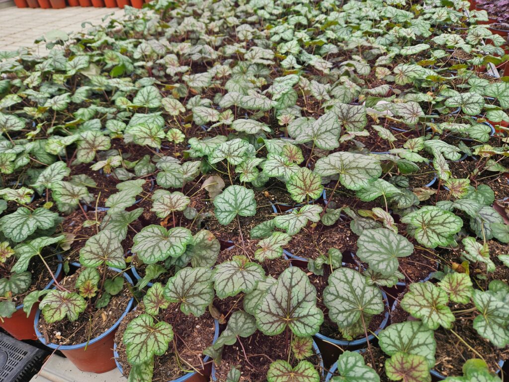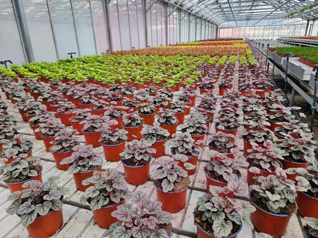 Nach dem Rücken wachsen die Heuchera kontinuierlich weiter, bis sie schliesslich ihre verkaufsfertige Grösse erreicht haben.